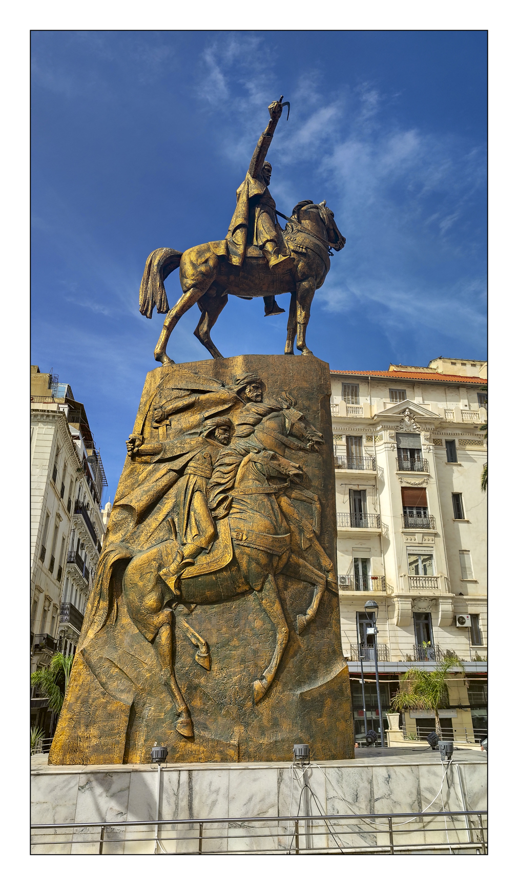 There are three distinctive structures on Algiers’ skyline. There is the new mosque (red circle centre image 01), the Martyr’s Memorial (red circle left – image 01), and the hotel El Aurassi from the balcony of which image 01 was captured. The new mosque like all but two mosques in Algeria is not open to non-Muslims. I will have something to say about it and the hotel in a later post. In today’s post you and I will visit Martyr’s Memorial, take note of elements of Algeria’s history, and observe the street.