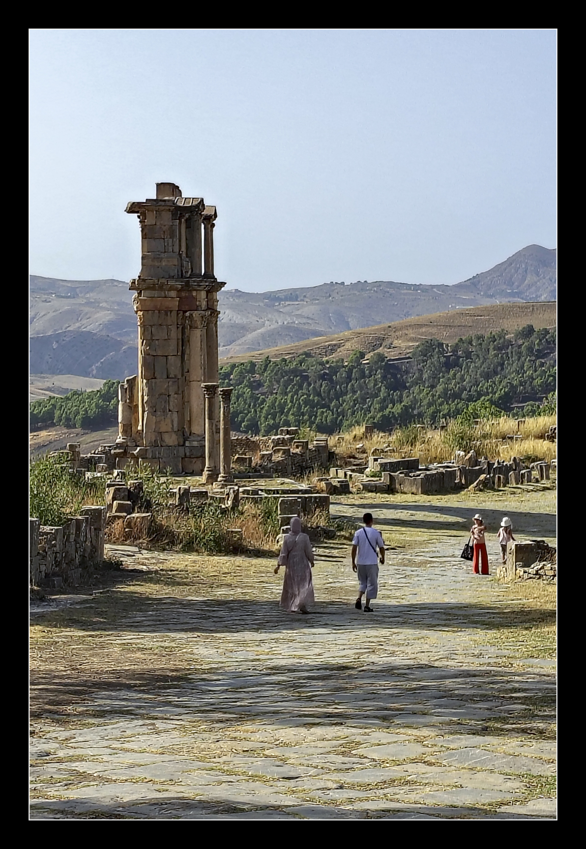 ~ 06, 07 – If this was in Europe, there would be queues of buses laden with tourists all with sun umbrellas, all clambering for the identical image. Here in Algeria, there are no bus loads. Instead, there may be a dozen or so other travelers or Algerians visiting a site. As a result our site visits have a sense of surrealism where time becomes a liquid. These places were vital some time in the past, and I can still walk on remnants of mosaics that only a few present day craftspeople can recreate. Even the ghosts of these places have found resting places. I wonder what if anything of this era will survive once Gaia has reclaimed her land.