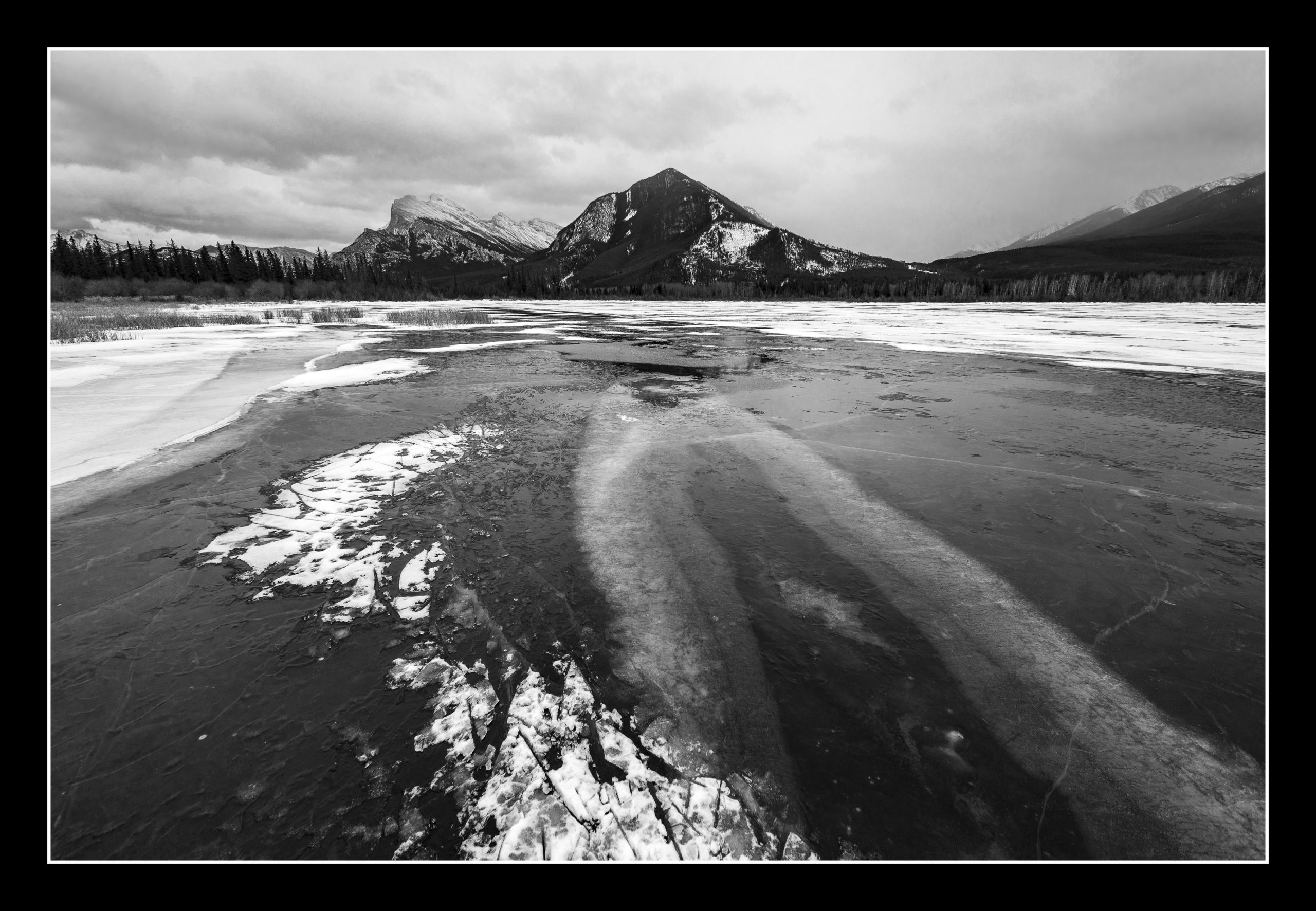 Sometimes I get frustrated with my ignorance of how things work. One of those things was my wide angle lens (Canon RF 16mm f 2.8 STM), which I usually carry with me but seldom pull out of the bag because I didn’t know how to use it properly. Yesterday I decided to do something about it. Keith and I drove out to the Banff area, and I had only my wide angle lens on the camera. I am now happier with the lens, and quite pleased with these 4 images. The first photo is definitely a collaboration as Keith suggested the location and point of view – thanks Keith. His perspectives on the day can be found at https://keithsodyssey.blogspot.com/.