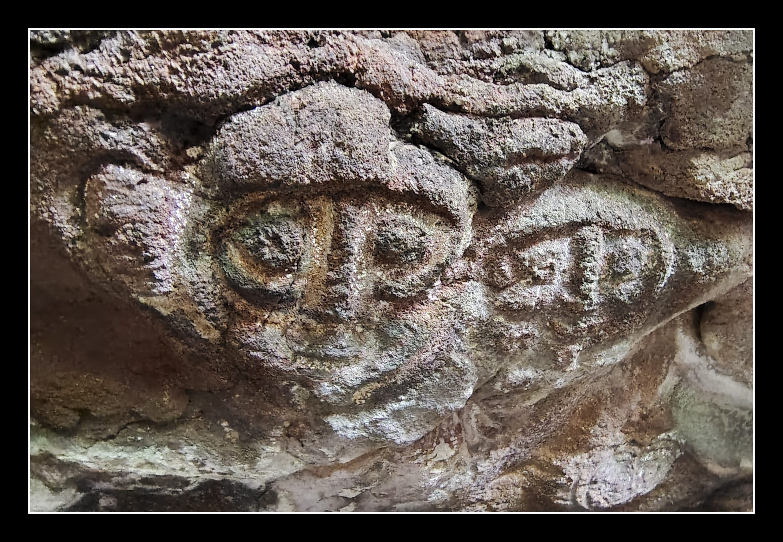 ~ 06 – Makemake – Photographed while lying on my back in cave now mostly filled with rocks inches from the petroglyph using my phone camera